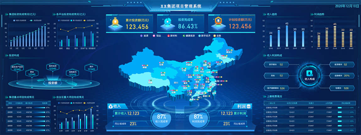 - 我們基于webgl等技術開發(fā)了大屏圖表插件,通過簡單拖拽即可實現(xiàn)自動播放、3D動畫特效等多種效果;圖表類型包括輪播三維組合地圖、輪播gis點地圖、流向地球、時間齒輪和目錄齒輪等,科技感十足,讓大屏展示效果更加炫酷